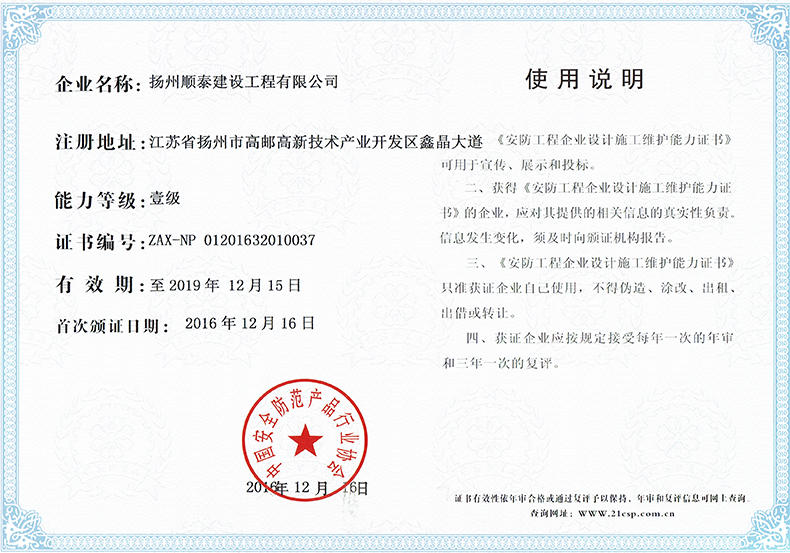 安防工程企業(yè)設(shè)計施工證書-順泰交通