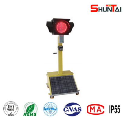 移動(dòng)式太陽(yáng)能信號(hào)燈是一種可移動(dòng)、可升降的太陽(yáng)能應(yīng)急道路交通信號(hào)燈,采用太陽(yáng)能供電、市電輔助充電。