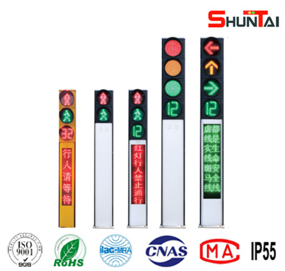可嵌入式安裝行人過街語音提示器和戶外表貼LED顯示屏。側(cè)面可外掛人行燈,實現(xiàn)雙燈或三燈共桿。